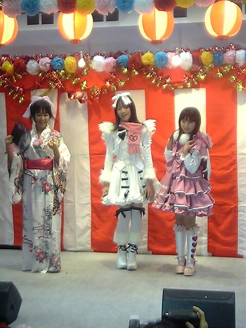 ※カメラは糞携帯ですので勘弁してください・・・ 今回は『怒首蜂』シリーズで有名な『ケイブ』様より招待券をいただいたの 本日はビジネスデーではありますが潜入に成功しました。 (いつもチケット貰うくせに友達に上げちゃうんだよねw) 初めてのAOUでwktkだっぜ! 早速ですが礼儀としてチケットをいただきましたので ケイブ様のブースへ行ってきました。 というより、ここしか目的が無かったのでどうしようもないw デススマイルズ2! ロリ度合いがさらに増した看板になってしまってふいたw 残念ながらゲーム画面の撮影は禁止されているのでレポを ロリ度合いがさらに増したキャラ選択画面でふいたw 操作は以前のように覚醒させるタイプではなく 例えるなら『レイストーム』シリーズみたいなロックオンシステムが採用されてました。 稼ぎは連鎖による高得点狙いがメインになるのかな? (点数見てなかったから正確には正規品を待ってアルカディアを読もう!) ケイブさんといえばイベントスペースで催される歌とダンスの『ケイブ歌謡ショー』w ケイブさんで出展した3タイトルにちなんだ出し物で 1番は『ウハウハ大奥』で殿が姫の帯を回し取るというゲームで ダンスの途中で白い着物を着た姫が着物の隙間から太ももをチラチラさせて 最後のは殿に廻され水着がチラリとするエロ展開でしたw 俺的には水着チラリさせ恥ずかしがりながら「およよ・・・」という感じで着物をフワサと拡げながらペタン座りしてくれたら最高だったのにな~ (アニメ『星方武侠アウトロースター』の鈴鹿みたいな感じ・・・いつのアニメだwww) 2番はデススマイルズ2のコスチュームの二人が繰り広げるダンス! なかなか完成度が高いダンスと『歌w』でした。 この歌wは現在ケイブさんの携帯サイトで会員様限定で配布していますので 是非に会員になってGETしてみてくださいw 最後は 業界初?たこ焼きの匂いが排出される『元祖たこやき』と『お祭りやさん』! 全員参加の密集体制の演者さんw そしてコスが場違いなデスマ2の二人w けど、ユーザーに対して楽しいことを考えてるなーという会社の明るい雰囲気がとっても伝わってきたイベントでした。 で(おそらく)売り出し中のグラビアアイドルだったのか 帯取られ姫とデスマ2の二人の写真撮影会が開始ww 他のブースでやることが無かったのでついカッっとなって 撮りまくった!後悔はしていない! この3人、「告知ありますか?」の問いの答えで 自分の名前を告知しなかったのは初々しいと捕らえてよかったのか?緊張してたのか? あと「22日にイベントやります!」ってどこでやるの? どじっ子なんですね、わかります。
